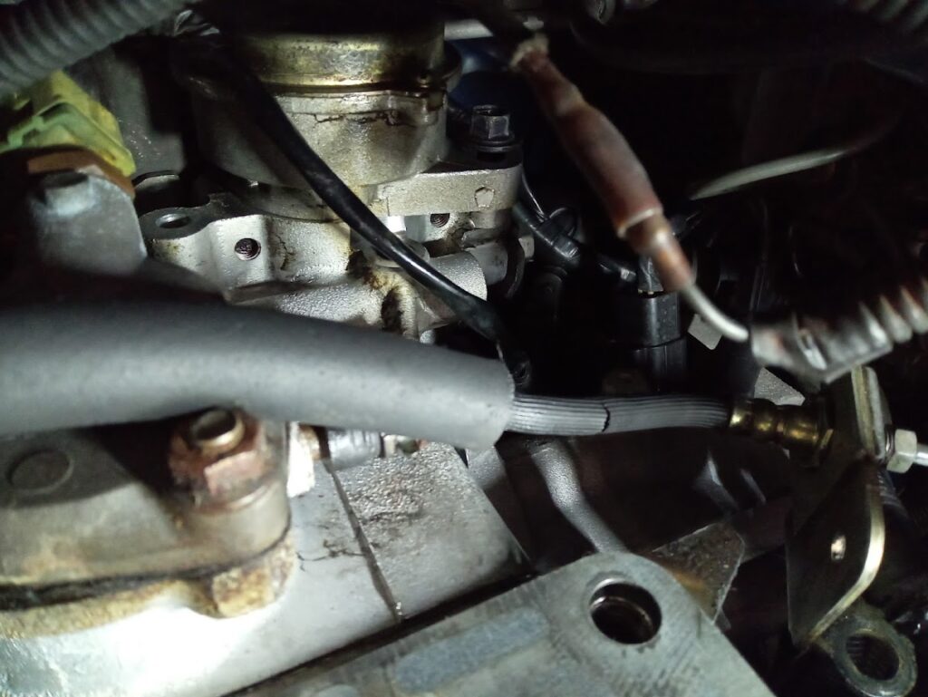 そして、ミッション上のヘッド裏やクラッチホースをみると